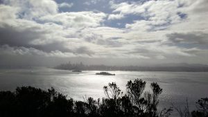 It was sunny and pleasant all the way out to the island, with great views of Alcatraz. In the distance, however, I could see storms rolling around the hills on all sides.