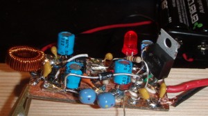 The prototype was a little smooshed because I had originally intended to only build the LT1302 circuit on that piece of copper clad board, and then I added the filter, and finally the 13.8V supply.