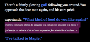 Technical: 6. Links for save, menu, and inventory at bottom of the page would have worked better in a collapsible side panel, but I do appreciate that they were available to the player at all times.